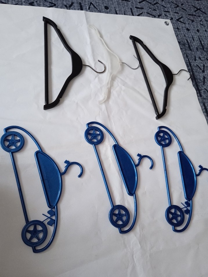 Tekerlekli araba şeklinde mavi askılar, renkli ve eğlenceli tasarıma sahip. Kıyafetlerinizi düzenlemek için ideal. 3'ü araba biçimli 5 askı