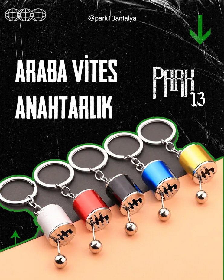 Renkli, araba vites şeklinde minimalist ve punk tarzı anahtarlıklar. Birden fazla renk seçeneği mevcut.
