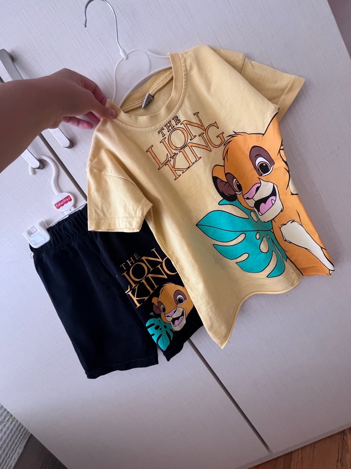 Pamuklu, rahat kesim, kısa kollu ve yuvarlak yakalı bu erkek tişörtü Aslan Kral baskısına sahip renkli bir tasarımdır.