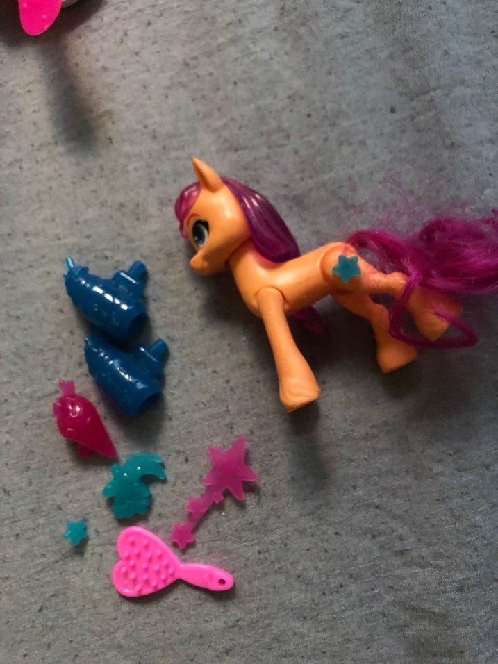 Renkli at figür ve küçük aksesuarlar seti. Canlı ve eğlenceli tasarıma sahip oyuncak.