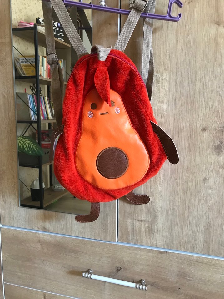 Yumuşak kırmızı kumaştan, eğlenceli avokado desenli renkli çocuk sırt çantasıdır. Ayarlanabilir askılarıyla rahat taşınır.