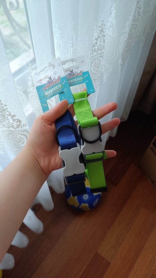 Canlı mavi ve yeşil renklerde, ayarlanabilir ve kolay açılır tokalı köpek tasması. ikili fiyat