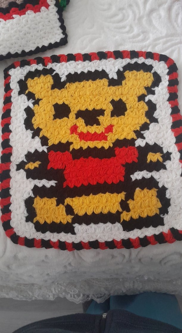 Kırmızı bordürlü, ayı desenli renkli banyo süngeri, nazik temizlik sağlar. lifi