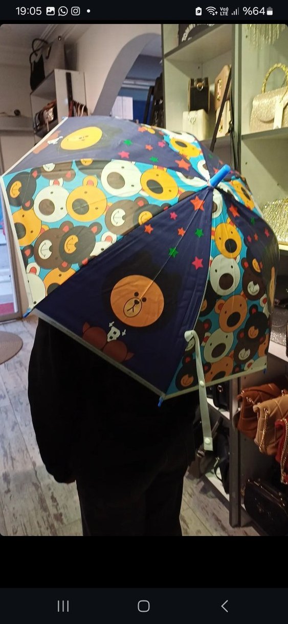 Renkli ayı desenli, tokalı kadın şemsiye; sokak stili ile bohem ve retro tarzını bir araya getiriyor.