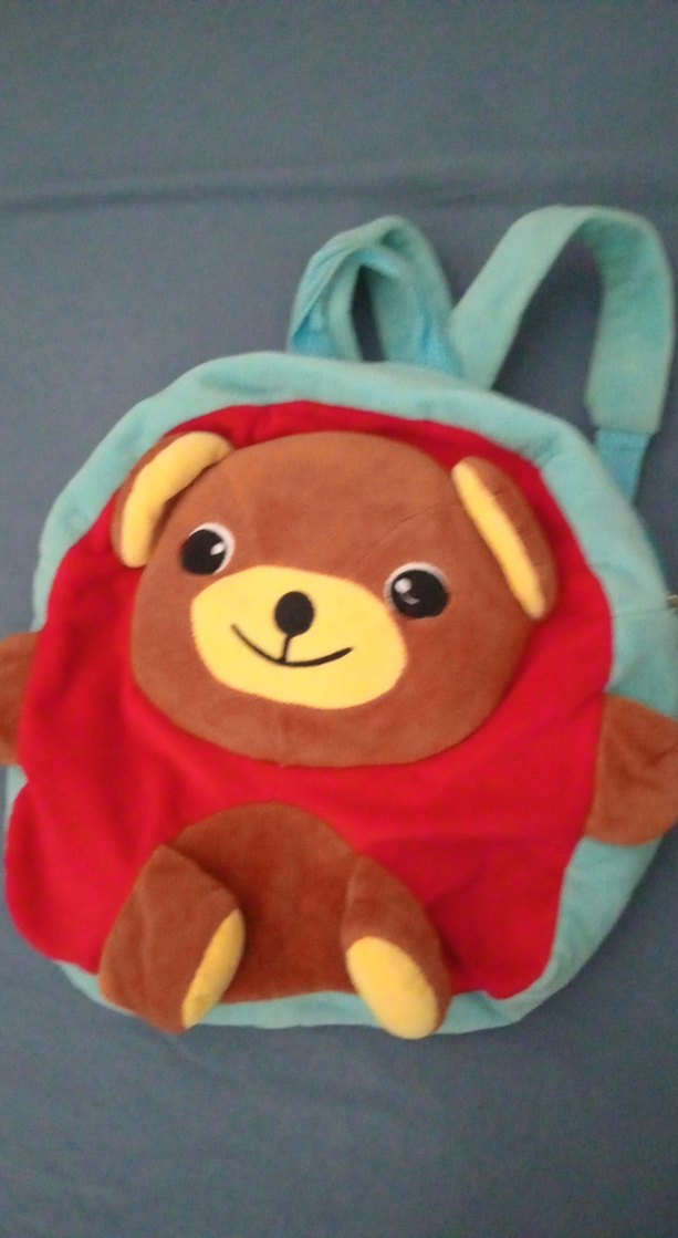 Renkli ve yumuşak kahverengi ayı figürlü çocuk sırt çantası, okul için uygundur.