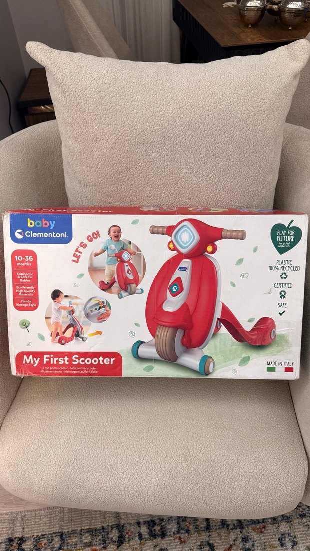 Baby Clementoni'nun renkli İlk Scooter yürüteci, 10-36 ay arası çocuklar için uygundur. %100 geri dönüştürülmüş plastikten yapılmıştır, güvenli ve sertifikalıdır. İtalya üretimi.