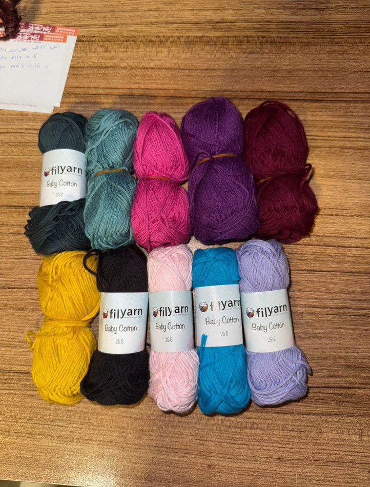 Filyarn markasına ait yumuşak ve canlı renklerde Baby Cotton iplik seti, el işleri için uygun. punch işleme baby cotton ip en uygundur.