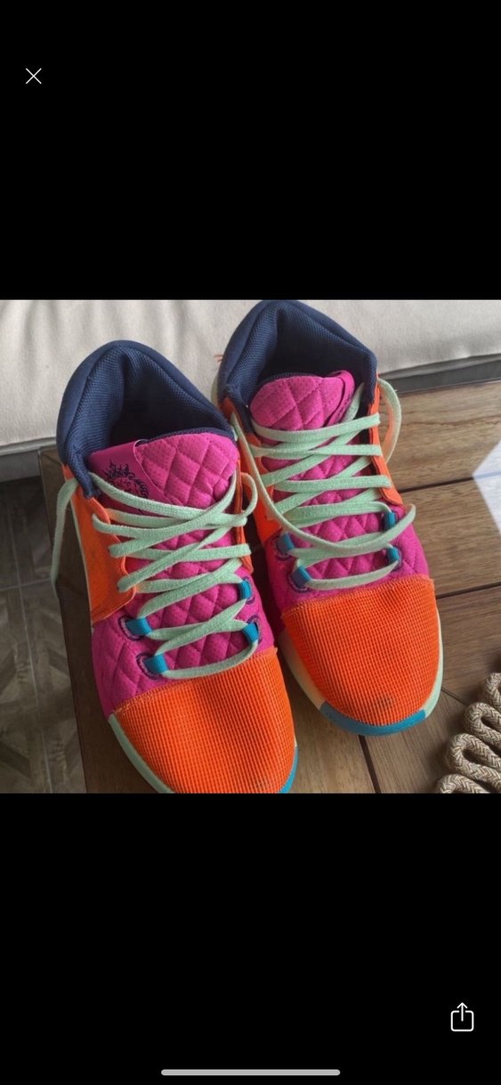Çok renkli bağcıklı basketbol ayakkabısı, tie-dye deseni ve velcro bantlarla spor ve sokak stilini birleştirir. Trendy gündelik kullanım için uygundur.