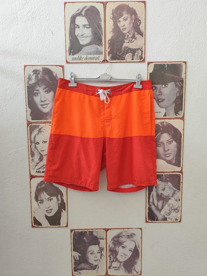 Renkli batik desenli, bağcıklı ve bol kesim erkek mini mayo, plaj ve sokak stili için uygun.