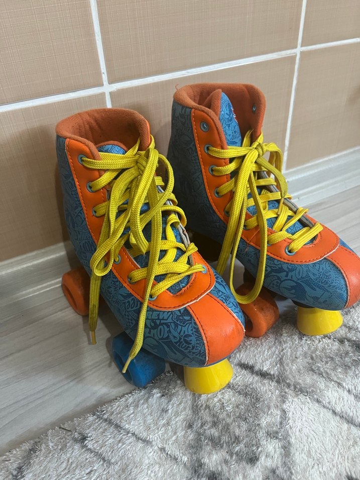 Renkli desenli erkek paten ayakkabısı, bağcıklı ve kauçuk tekerlekli, spor ve athleisure tarzı için uygundur. 32 33 noya uygun