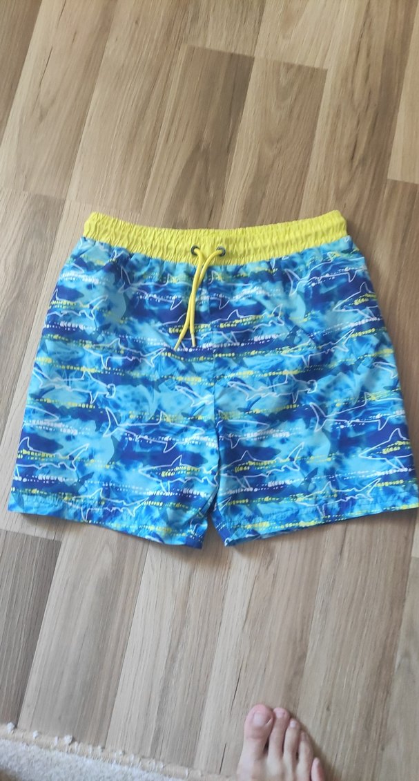 Renkli batik desenli, bol kesim erkek şort, sarı bağcıklı kemer detayına sahiptir.