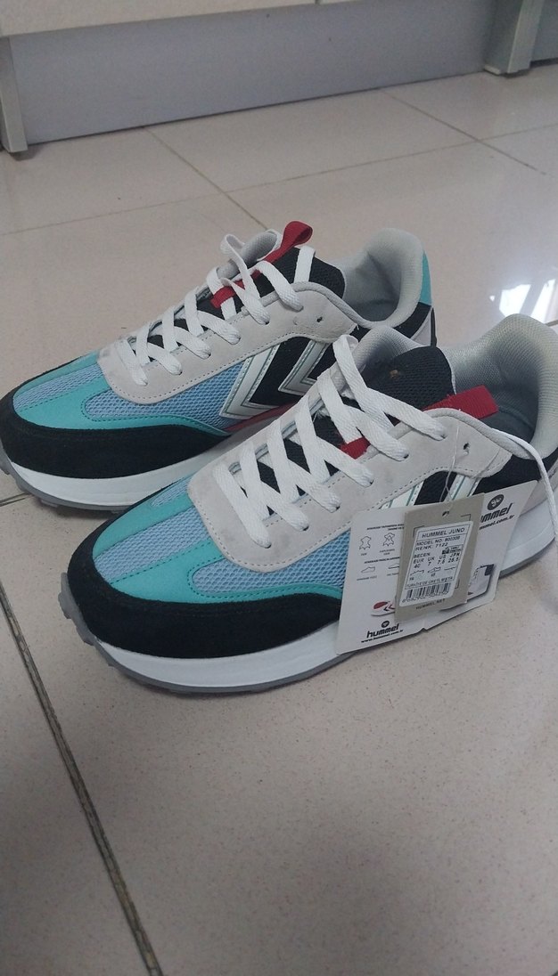 Renkli baskılı, bağcıklı ve kauçuk tabanlı erkek spor ayakkabısı, sportif sokak giyimine uygundur.