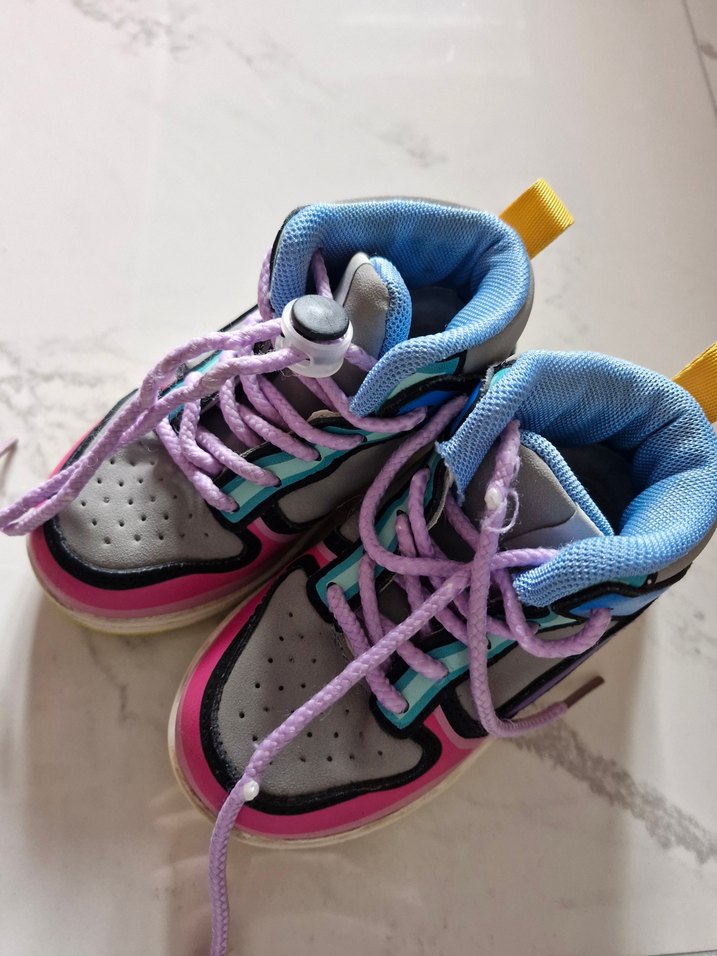 Renkli tie-dye desenli, kauçuk tabanlı ve bağcıklı kız çocuk spor ayakkabısı, trend günlük sokak stili için uygun.