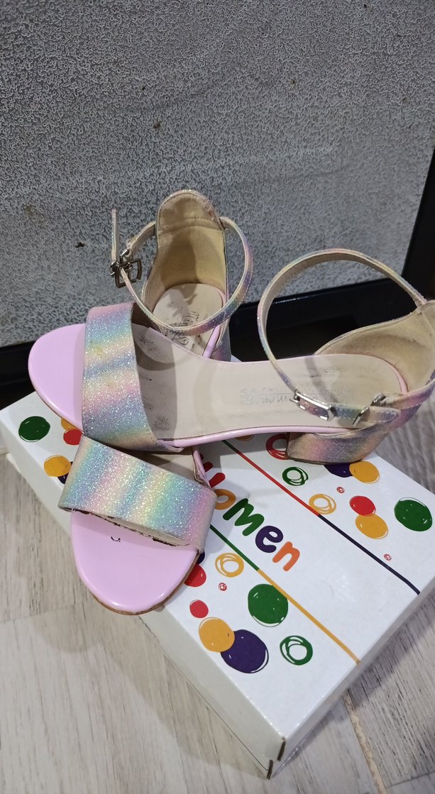 Lastik malzemeden, bağcıklı ve bağlama desenli pastel çok renkli kız özel gün ayakkabısı. Trendy ve çağdaş bir stil için uygun.