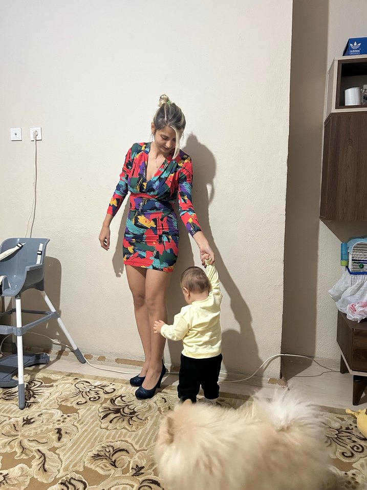 Renkli, kısa ve vücuda oturan ç. Bağcıklı, yakası kesimli, askılı kollu ve düğmeli. Canlı batik desenli, bohem ve retro tarzda günlük kullanım için.