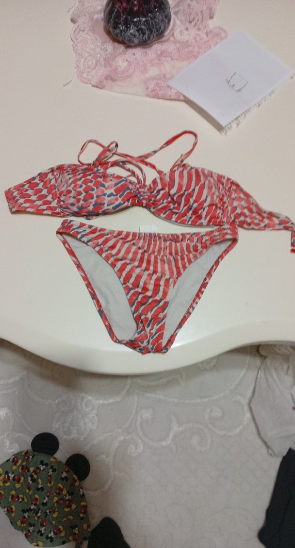 Renkli bağcıklı tasarımı, pileli detayları ve mini kesimiyle dikkat çeken, sıkı oturan bikini takımıdır. ️