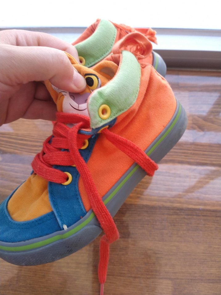 Bağcıklı ve cırtcırtlı, renkli ve tie-dye desenli çocuk spor ayakkabısı. Kauçuk tabanlı, trend sokak stili için uygun. 27 numarası