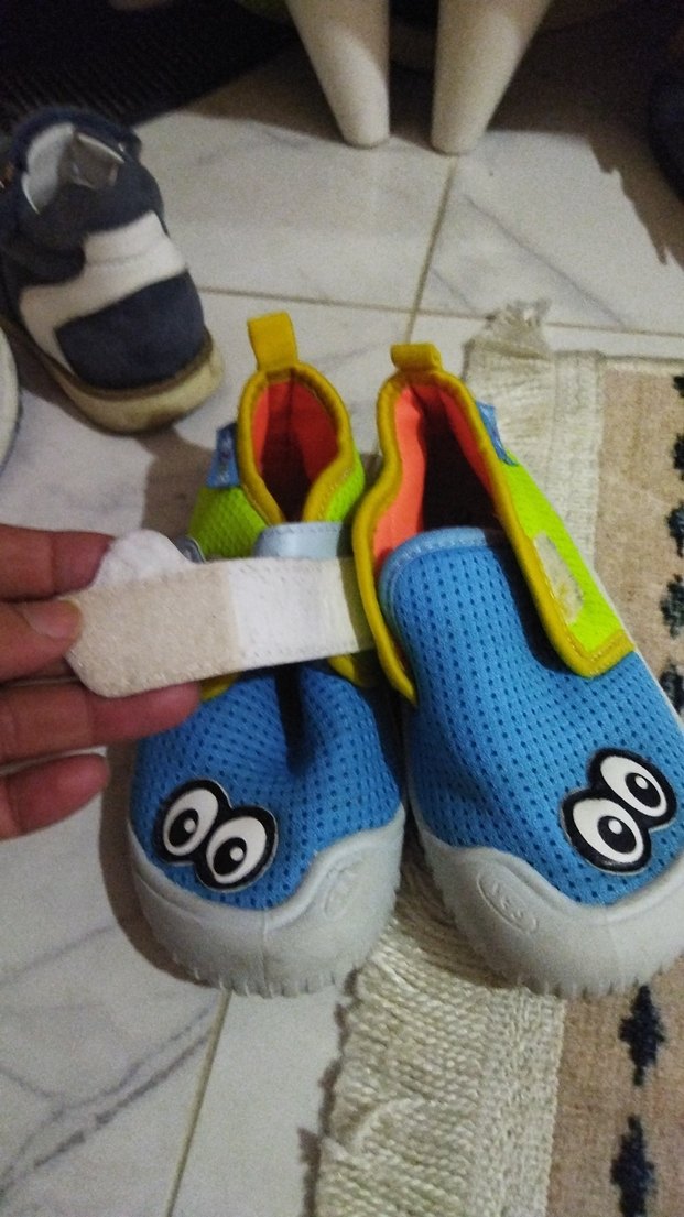 Renkli bağcıksız erkek çocuk terliği, bağcıksız ve cırt cırtlı bantlıdır. Kauçuk tabanlı, sokak stili ve rahat görünümlü bir modeldir.