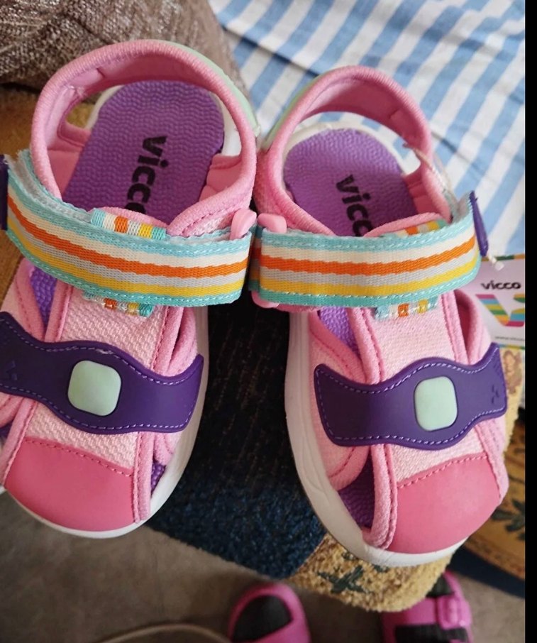 Renkli bağcıksız kız çocuk sandaletleri, kolay açılır kapanır cırt cırtlı bantlarla ve lastik malzemeden üretilmiştir. Trend sokak stili ile rahatlığı birleştirir.