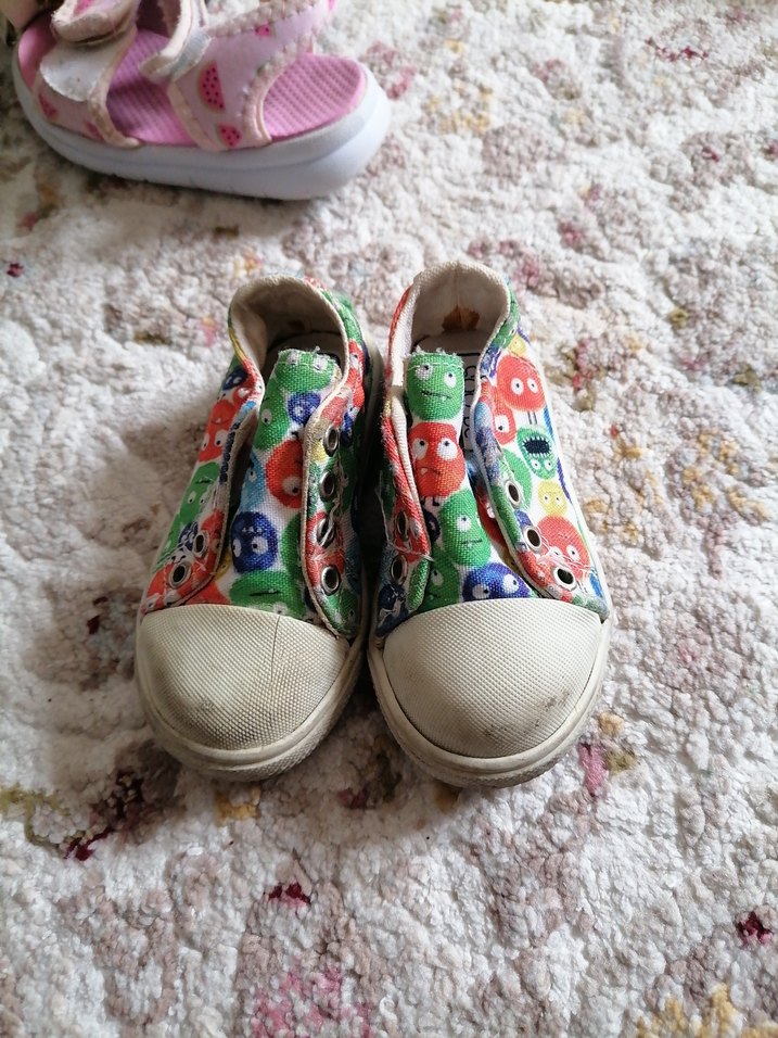 Bağcıksız, renkli bağcıksız kız çocuk spor ayakkabısı, lastik tabanlı ve bağcıklı yerine cırt cırtlıdır. Bohem, retro tarzına uygundur.