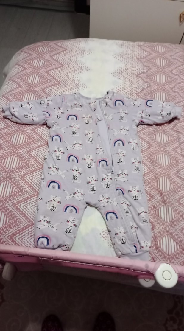 Pastel çok renkli, bağlama desenli ve örme dokulu bebek tulumu, bisiklet yaka detaylıdır. ❄️