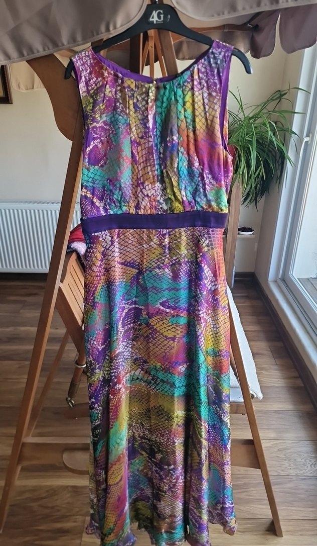 Kolsuz, drape yakalı, tasarım, renkli bağlama desenli saf ipek bohem kesim uzun elbise, parti için uygun.