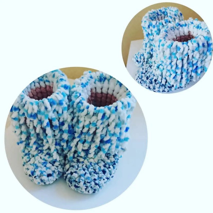 Yumuşak örgüden yapılmış, bağlama desenli renkli erkek bebek patikleri. Bohem tarzına uygun.