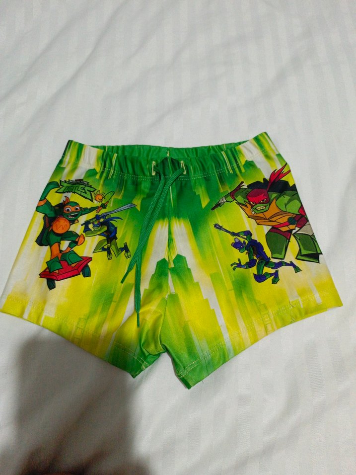 Renkli bağlama desenli, ayarlanabilir bel bantlı, canlı çizgi film baskılı erkek çocuk mayo şortu.