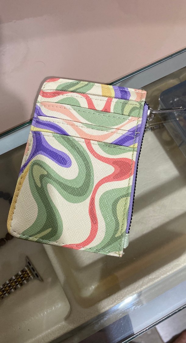 Pastel bağlama deseni ve fermuarlı kapanışı olan kadın cüzdanı. Yumuşak sentetik kumaştan, bohem ve retro tarzına uygundur. Hiç kullanılmadı