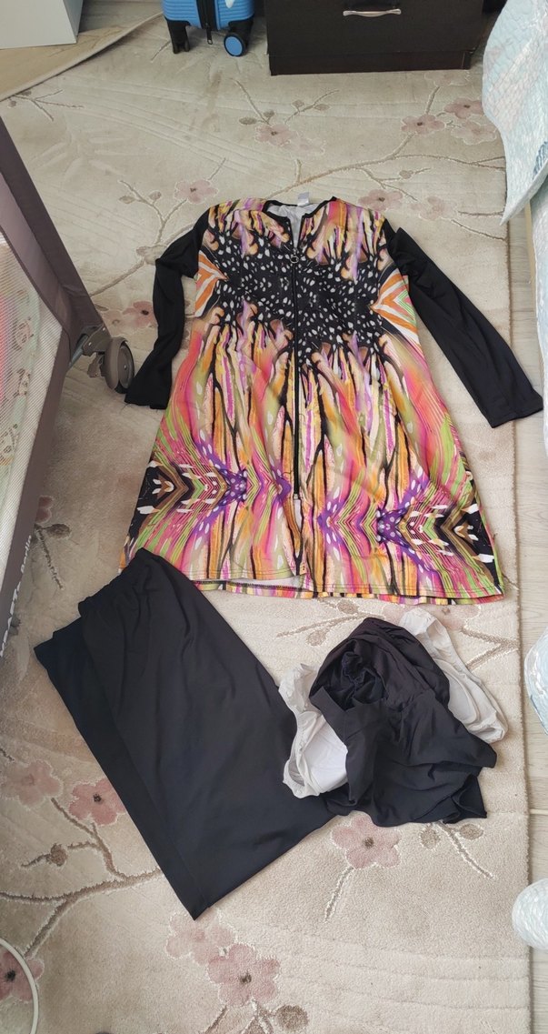 Renkli bağlama desenli, uzun kollu, V yaka, bol kesim hamile tunik. Sentetik kumaştan, bohem tarzda, günlük kullanım için uygundur.