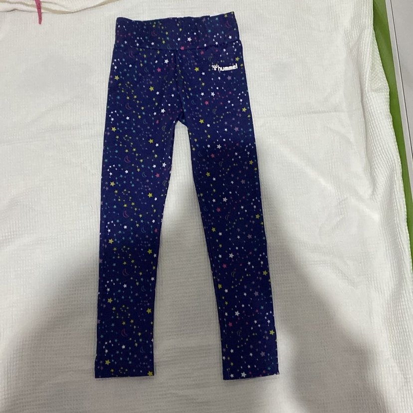Renkli bağlama desenli yıldızlı, elastik sentetik kumaştan yapılmış, fitted kesim mavi kız tayt. Hiç kullanılmadı yıkandığı için değişim yapılmadı