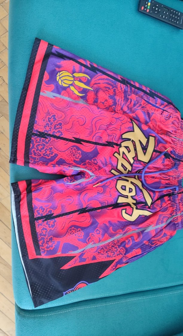 Canlı pembe bağlama desenli, sentetik kumaştan, bol kesim ve fermuarlı erkek spor şortu. Midi boy, spor ve sokak tarzına uygun.