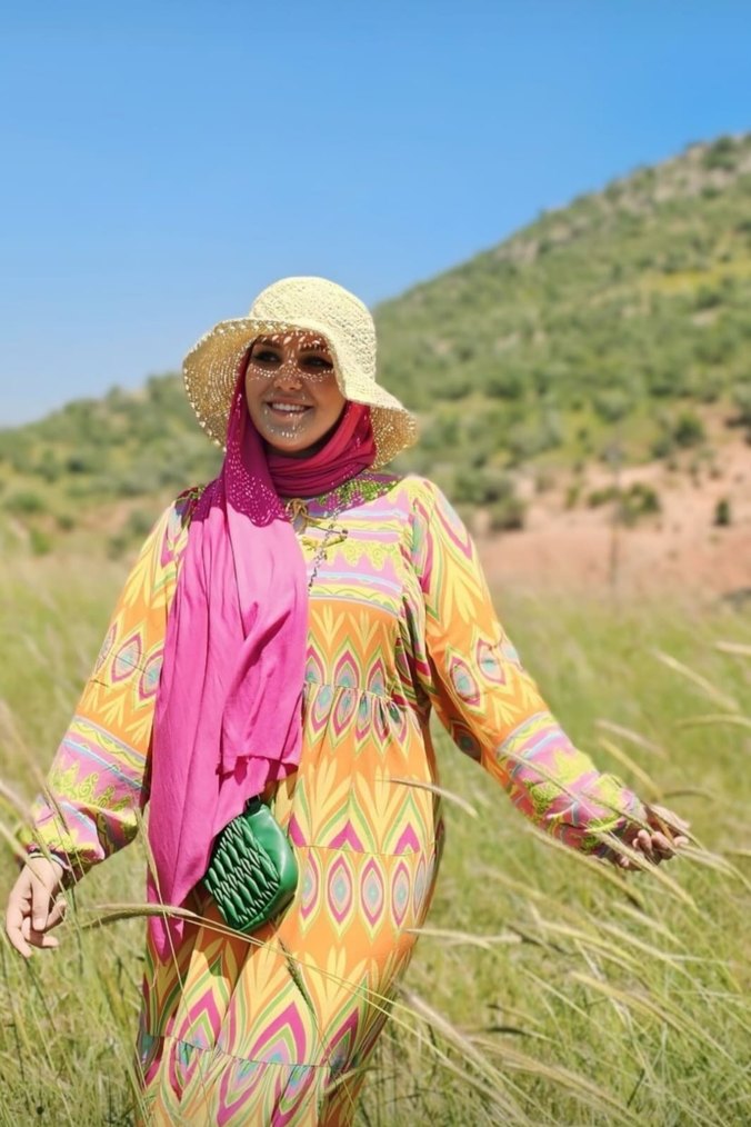 Renkli Bağlama Desenli Uzun Bohem Elbise