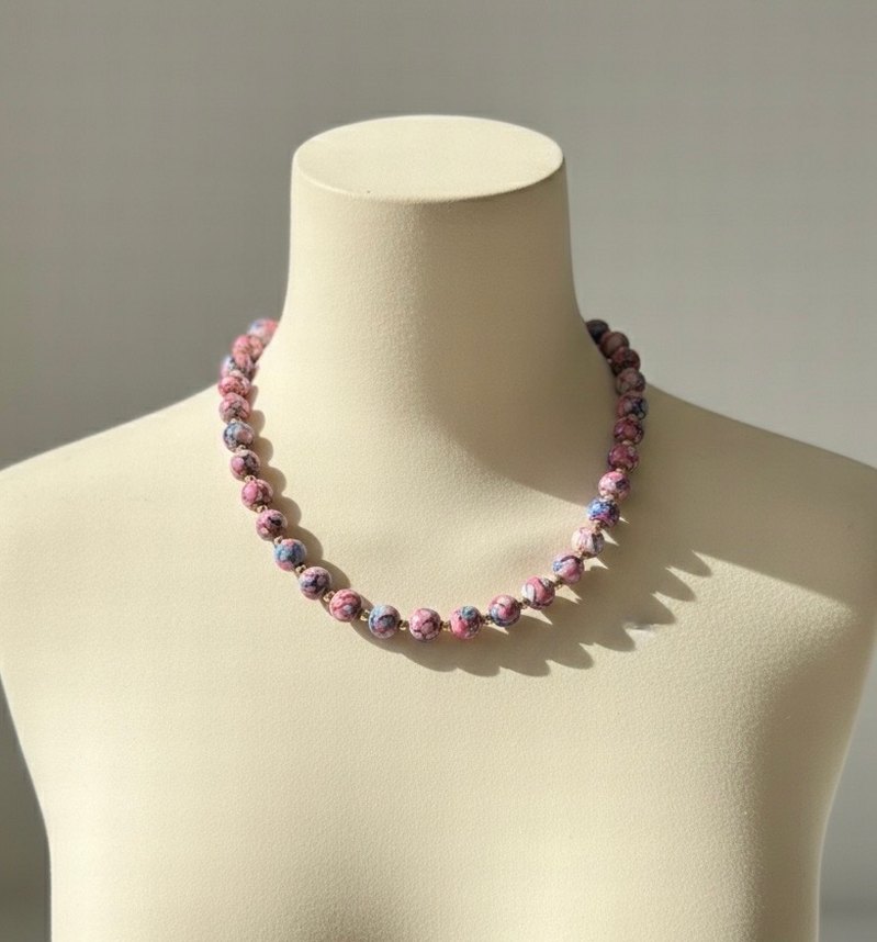 Renkli bağlamalı desenli boncuklardan oluşan bohem tarzda, normal uzunlukta midi kolye. Romantik gece için uygun, vintage dokunuş katıyor. Doğal taşlardan oluşmaktadır.