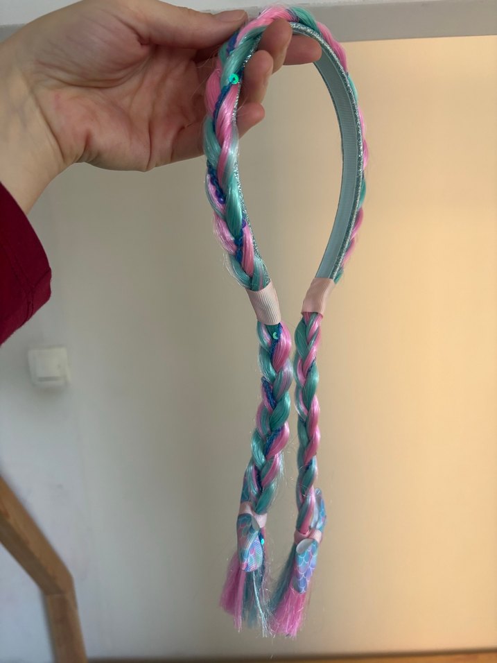 Elastik yapıda, pastel tonlarda bağlamalı ve örgülü saç bandı, bohem ve retro tarzı yansıtır.