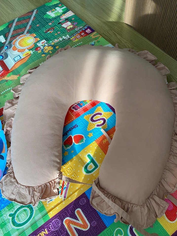Yumuşak kumaşlı, fırfırlı kenarları olan renkli hamilelik ve emzirme yastığı, konfor ve destek sunar.