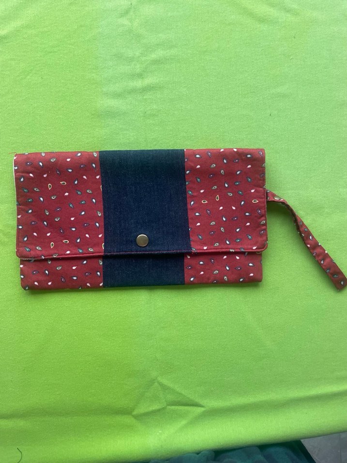 Tekstilden yapılmış, renkli bağlamalı ve bağlama desenli, günlük kullanıma uygun kadın portföy çantası, vintage ve karşı kültür tarzında.
