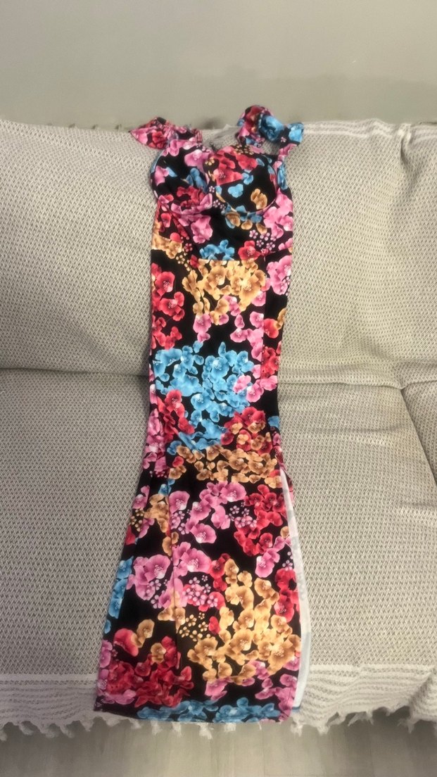 Renkli Bağlamalı Uzun Kadın Elbise