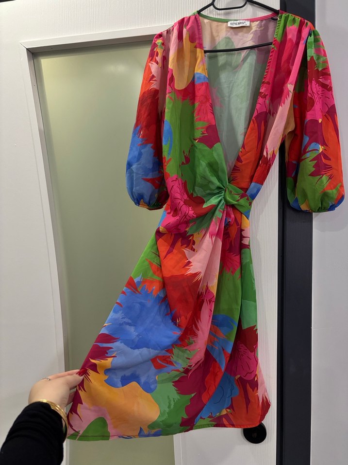 Renkli Bağlamalı Uzun Kadın Elbise sadece 1 kez kullanıldı