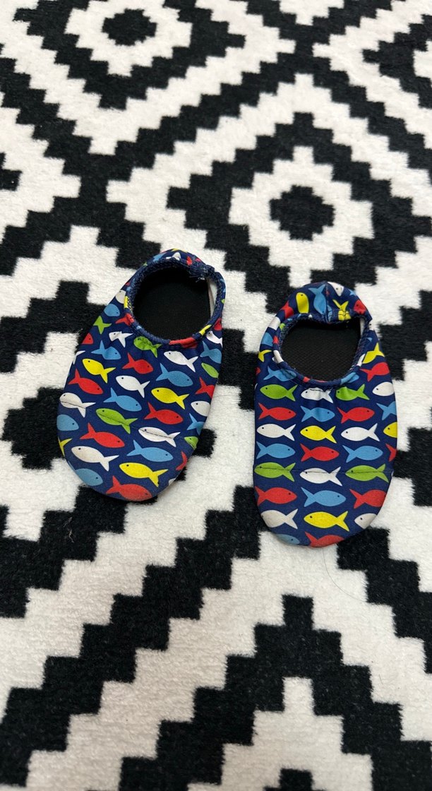 Renkli balık desenli erkek bebek ayakkabısı, kolay giyilen cırt cırtlı ve kauçuk tabanlı, rahat ve esnek yapıda.slipstop