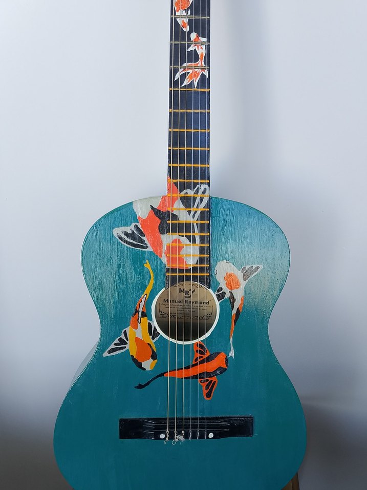 Renkli Balık Desenli Mavi Gitar