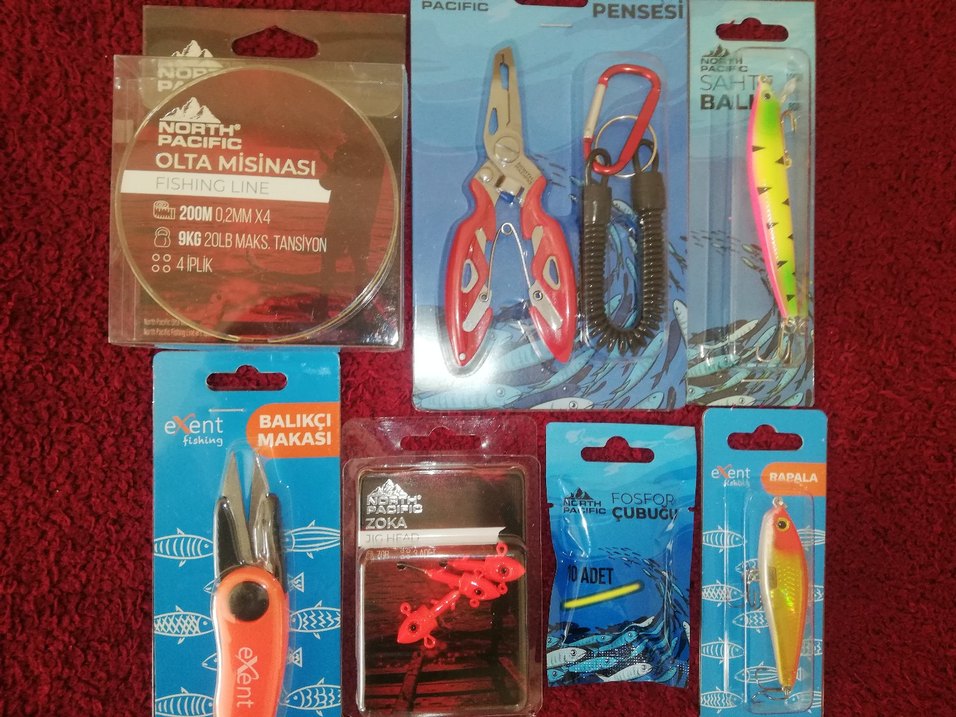 Renkli balıkçılık seti; makas, pense, misina, zoka ve fosfor çubukları içerir. Balık tutmaya uygun çeşitli araçlar. Hepsi kaliteli marka ençok tercih edilen av malzemeleri Amatör balık avcıları fotolara dikk bakın çok güzel kaliteli ürünler hepsi gıcır gıcır yepis yeni hiç kullanılmamış kutusunda tek tek satış yok toptan satış hepsi birlikte sadece 900 lira yok artık şaka gibi ama gerçek bedava bedava size gerçekten çok fazla indirim yaptım zararına satış yapıyorum pazarlık yoktur fiyat sondur zaten çok fazla indirim yaptım acele edin bu güzel fırsatı kaçırmayın hobidaşlar