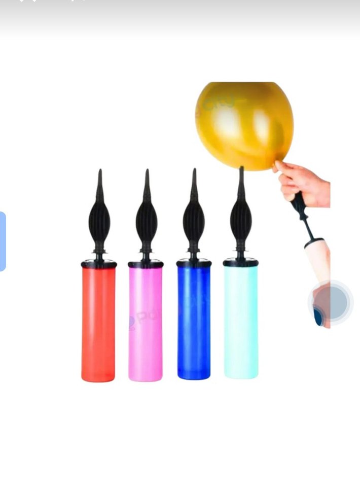 Kırmızı, pembe, mavi ve açık mavi renklerde dört adet balon pompası seti. Siyah ağızlığı ve tutma yeri ile balonları kolayca şişirir.