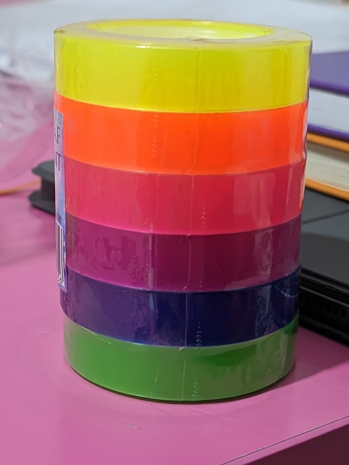 Altı farklı canlı renkten oluşan renkli bant seti, okul etkinlikleri için uygun.