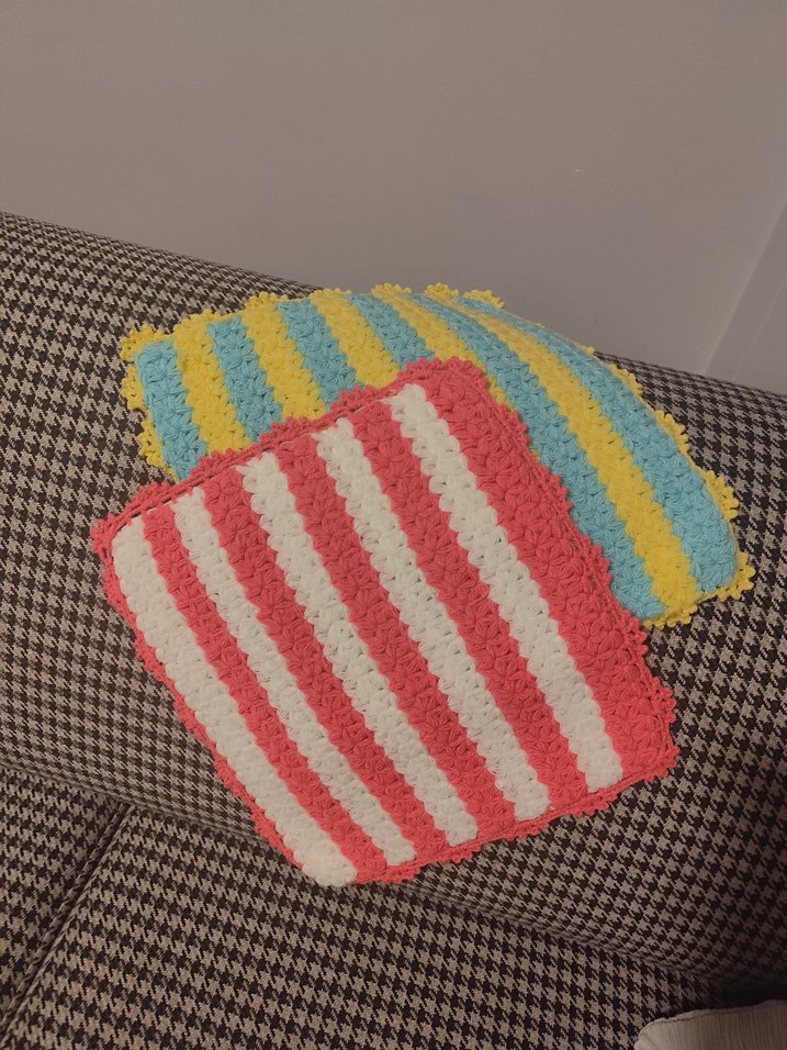 Canlı renklerde, çizgili desenli banyo Lifleri, nazik temizlik için uygundur.
