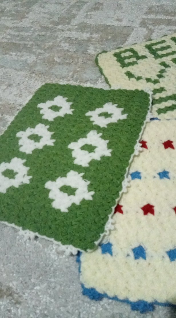 Çiçek ve yıldız desenli çeşitli renklerde banyo süngerleri.