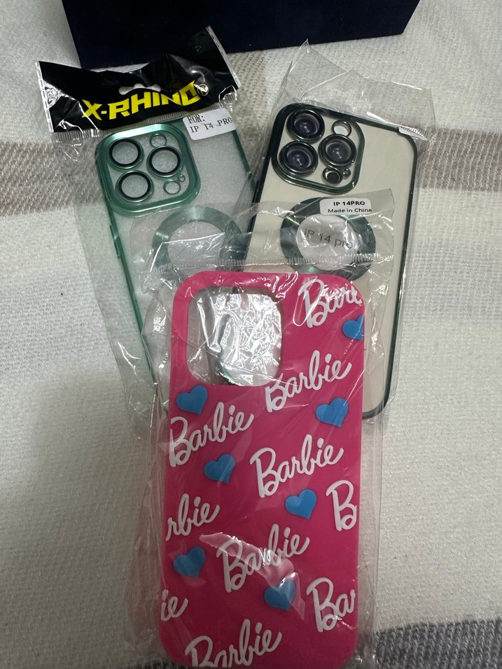 Barbie yazılı ve mavi kalp desenli, elastik özellikli renkli pembe telefon kapağı. Pop kültür tarzını yansıtır.