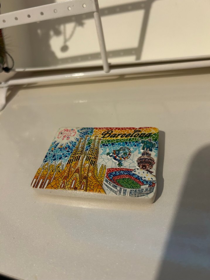Canlı mozaik tarzı tasarımla Barcelona'nın simge yapılarının yer aldığı renkli magnet