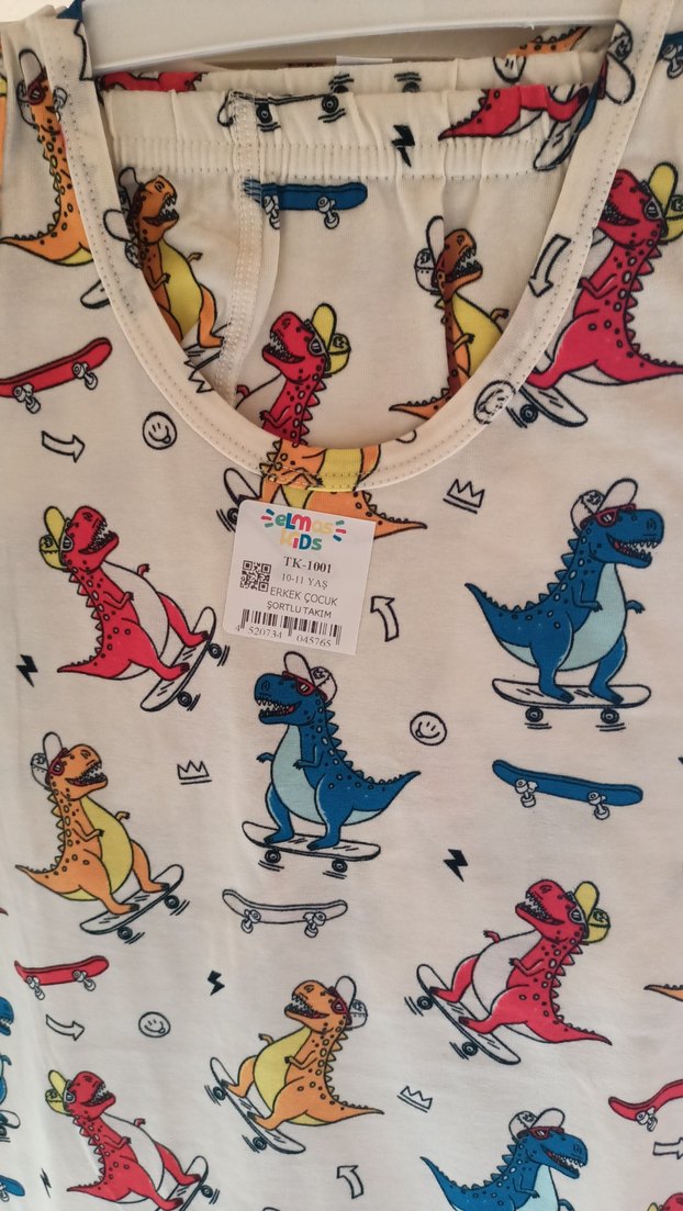 10 yaş Yumuşak kumaş üzerine renkli dinozor baskılı, çok renkli atlet takımı