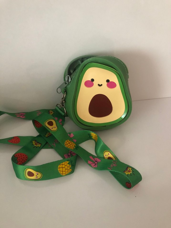 Renkli baskılı avokado desenli çocuk cüzdanı, fermuarlı kapanışlıdır. Meyve desenli uyumlu askısı vardır, bohem ve retro tarzına uygundur.